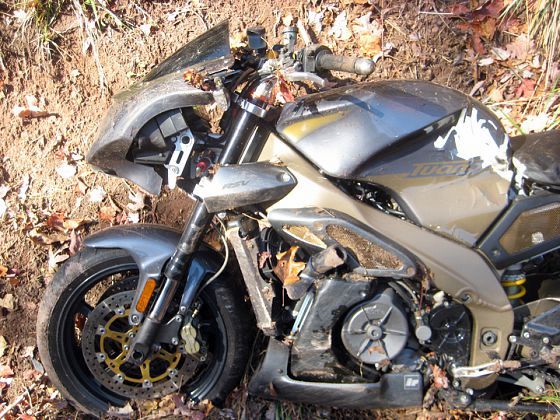 My bike fell over, yours slid;; I'd hardly call that even pumpkin.