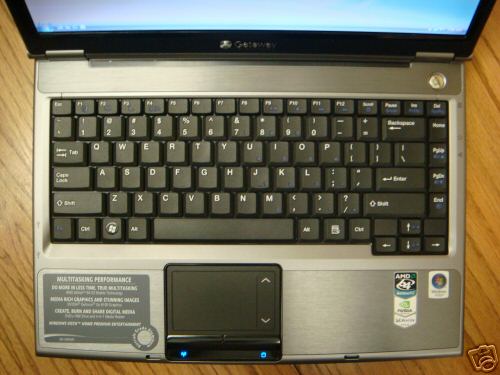 Gateway MT3422 AMD Turion™ 64 X2 Mobile Technology Tk-53 1.7GHz, 14.1" BrightView Display, 1 GB DDR2 Memory, 160 GB SATA 5400RPM Harddrive, DVD+/-RW (Dual Layer), Modem, Ethernet Lan, Wireless Lan, 4 In 1 Media Card Reader, 3 USB2 Ports, NVIDIA® GeForce® Go 6100 With Up To 256MB Memory, High Definition 2-Channel Audio, Expresscard™ Type 54, Battery, A/C Adapter, Windows Vista Home Premium Operating System.