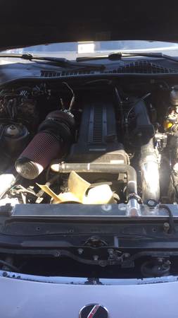 Single turbo conversion- cxracing manifold with a tial 44 waste gate, Borg warner s360 turbo, 3 inch v band down pipe, 3 inch HKS hi flow exhaust from a supra modified to fit, 1000 HP KLM fab intercooler, Tial 50 mm BOV, 440 aristo injectors