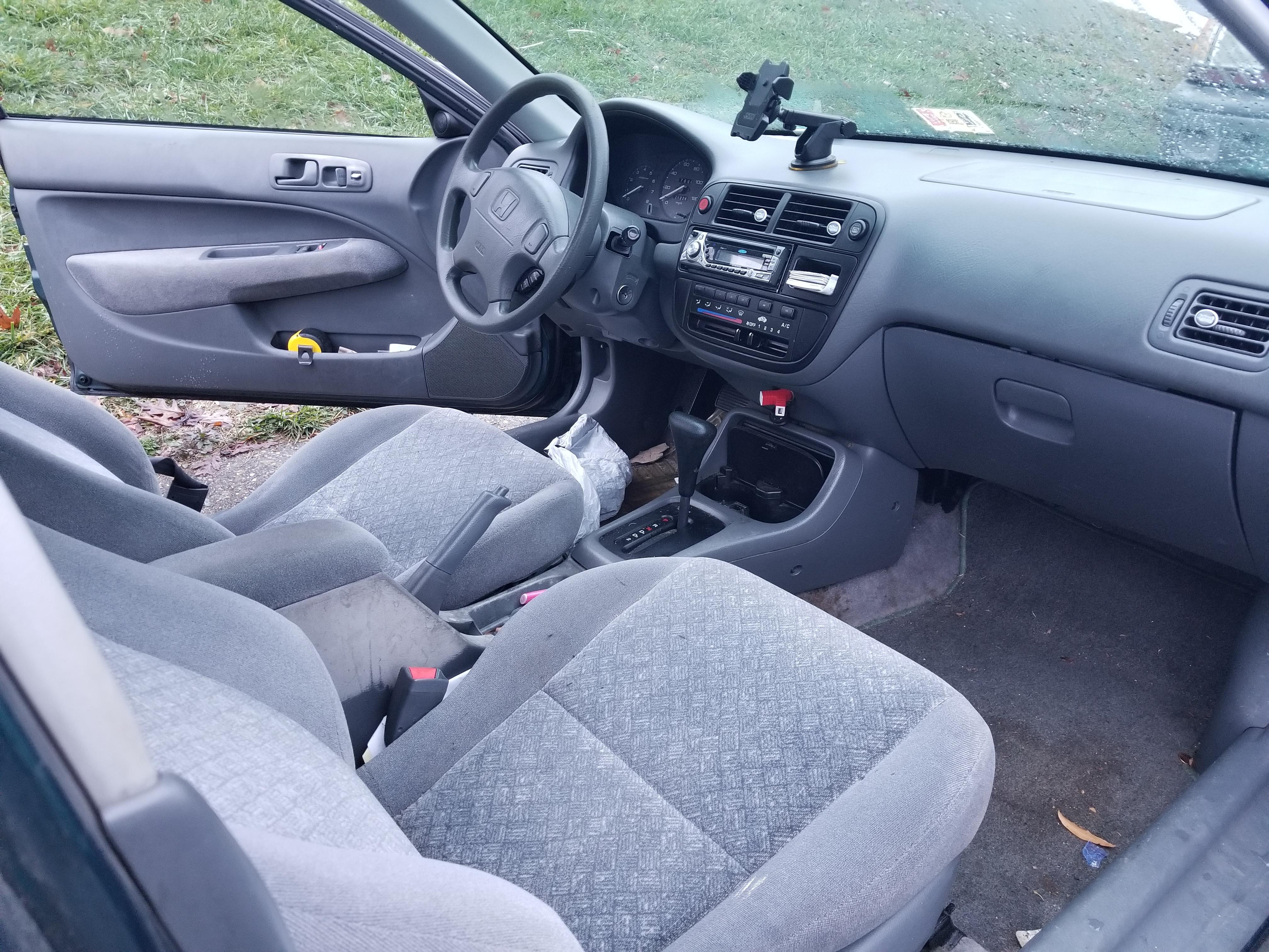 This is a 1998 Civic Coupe Ex Automatic with a Clean Title and about 210k on original motor and transmission. Other than the CD player, this thing is stock. It does turn on with no problem and can be driven. 1st gear is shot (slips) so I start in 2nd. About 1 out of 5 times, when shifting from 3rd to 4th, it stays in 3rd. I'd pull over, start from 0 and that usually works. That's the major problems. Can be driven home!!